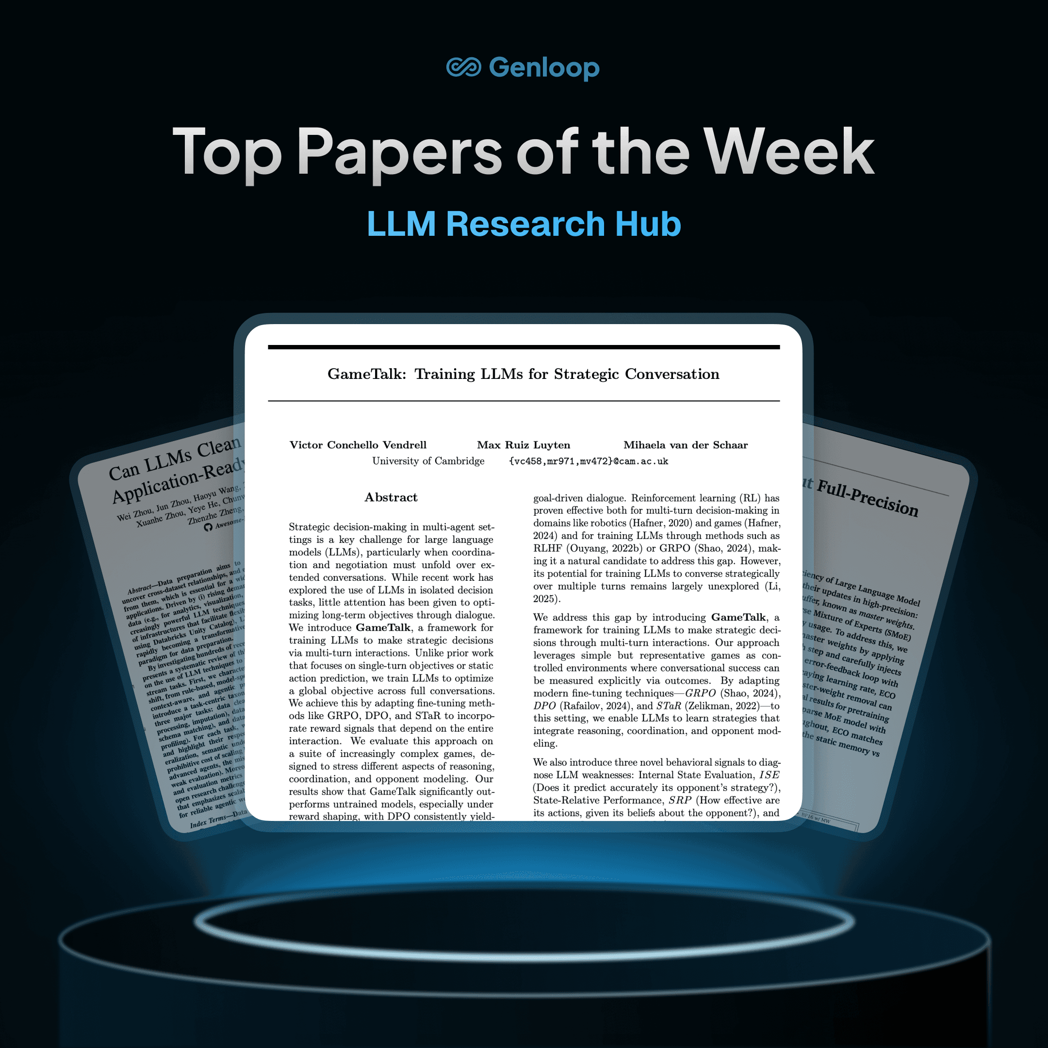 Top 3 papers of the Week [Jan 26 - Jan 30, 2026] suggested by Genloop's LLM Research Hub.
